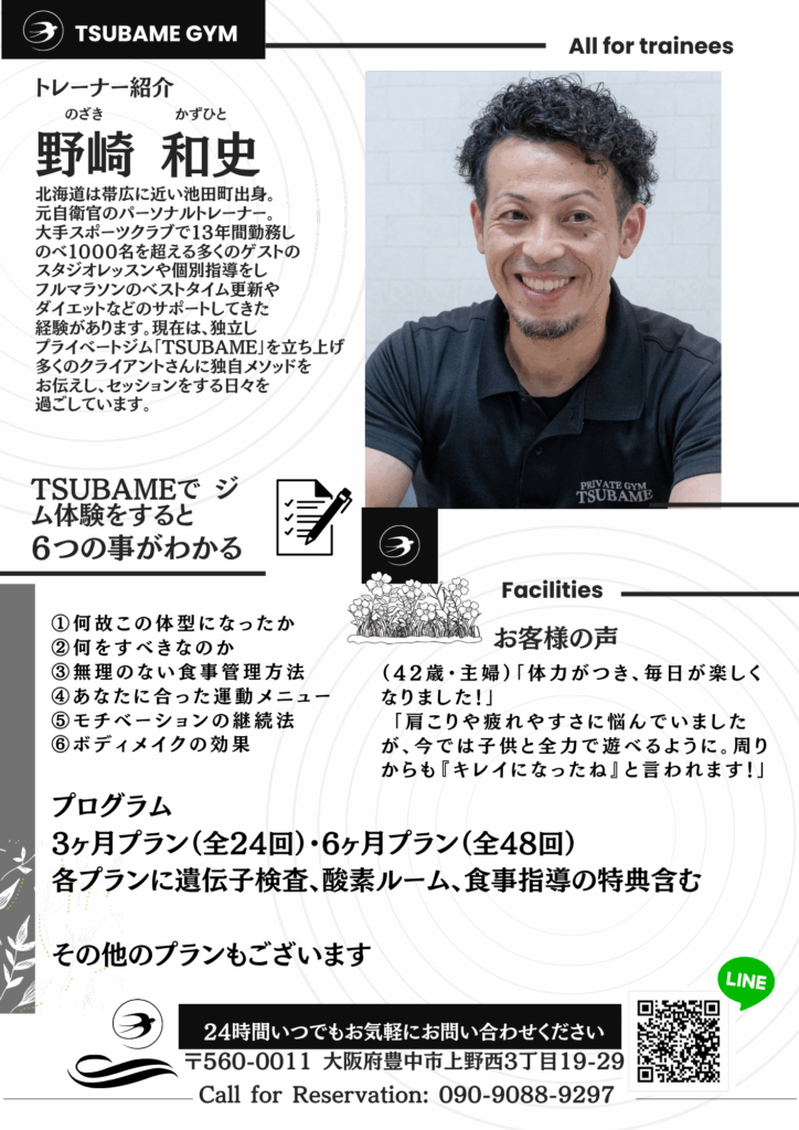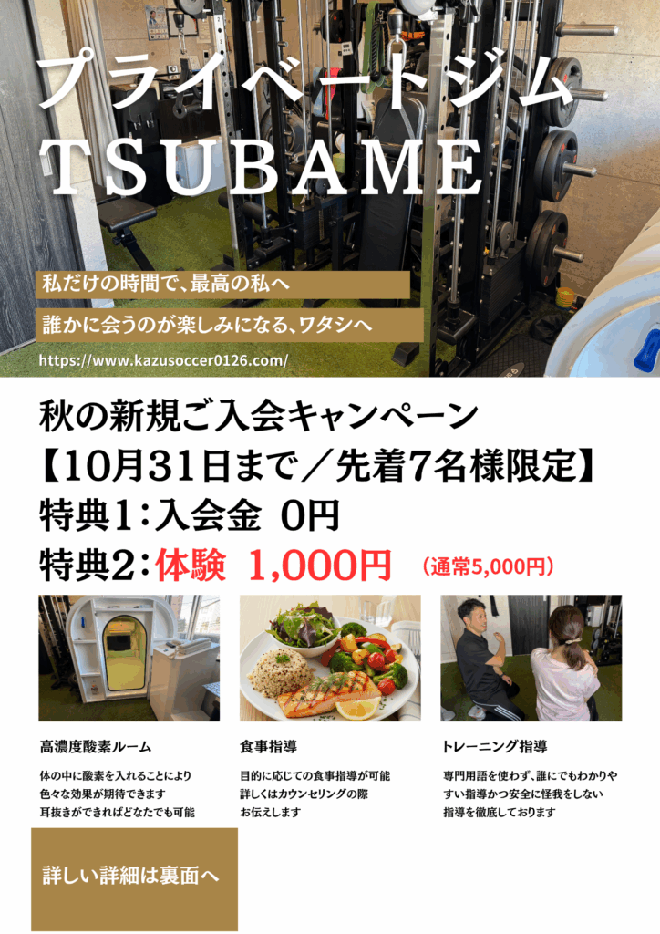 今後もプライベートジムTSUBAMEは、皆様が安心してトレーニングに励んでいただける環境づくりに努めてまいります。