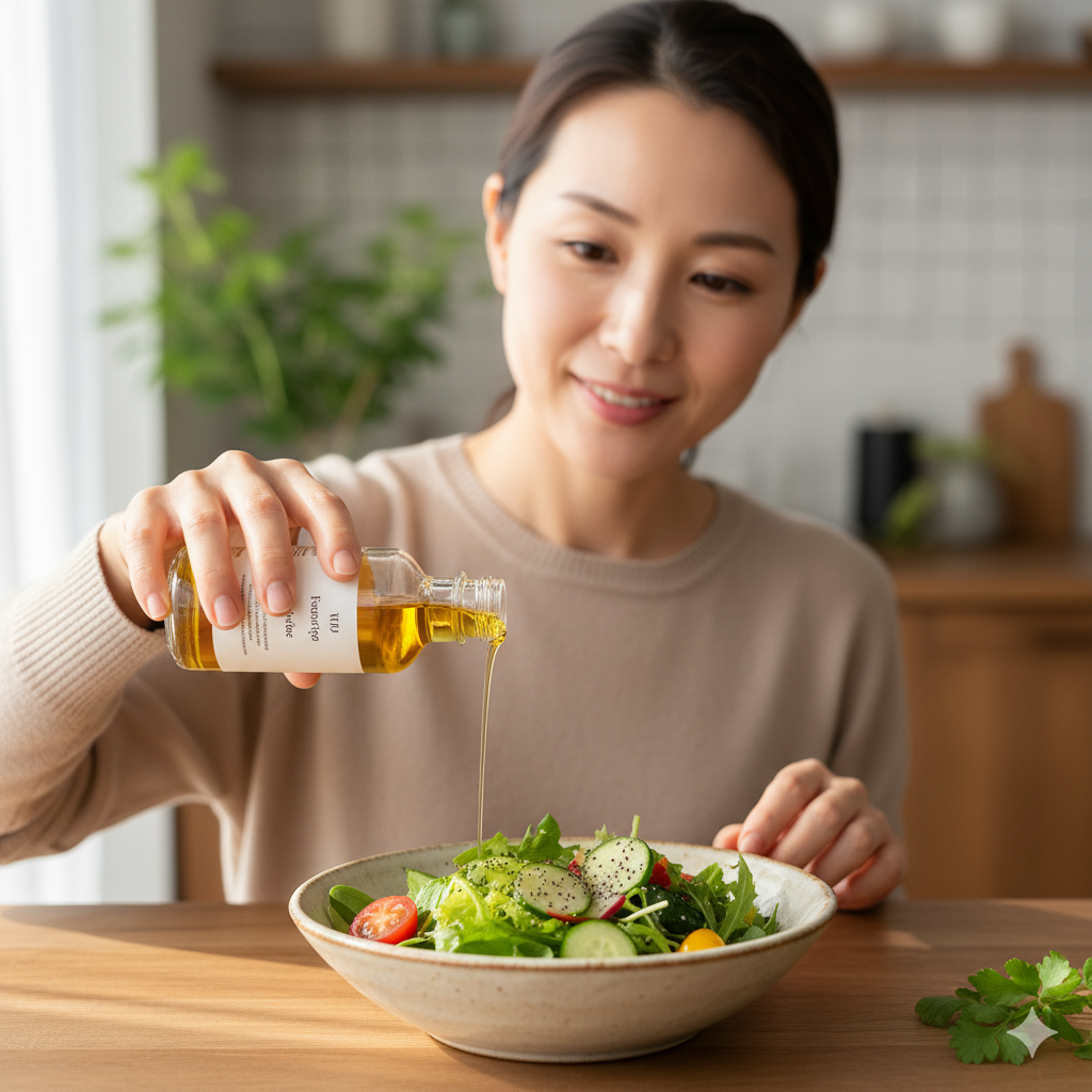 特に、亜麻仁油や荏胡麻油は、小さじ1杯を味噌汁やサラダにかけるだけなので、忙しい主婦の方でも無理なく続けられます。